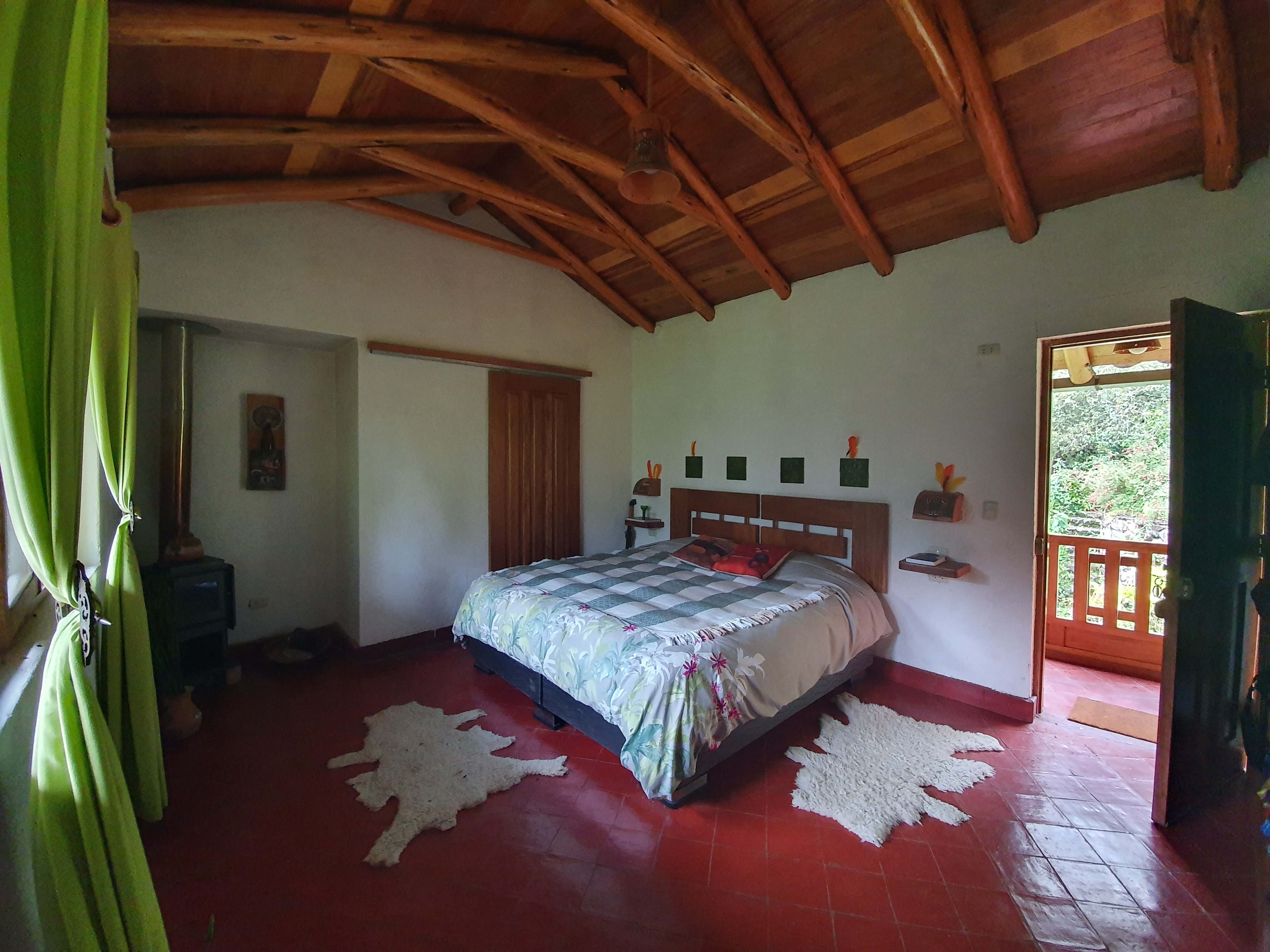 To reservation form Room Jungle: One king bed. Fireplace. Private bathroom. Balcony with mountain and garden view.